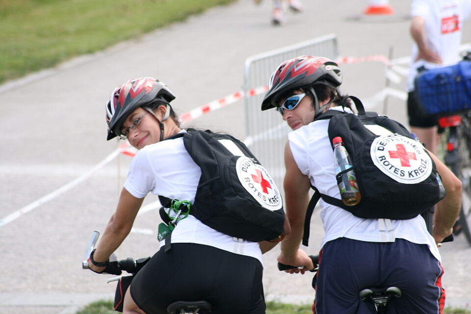 Bei idealem Wetter trafen sich über 3000 Sportler auf dem ehemaligen Bundesgartenschaugelände in Riem. Wie jedes Jahr waren auch ehrenamtliche Rotkreuzhelfer der Münchner Bereitschaften und der Wasserwacht dabei, die sich um die Verletzungen auf der Radstrecke, Erschöpfungszustände im Wasser und andere medizinische Probleme kümmerten.