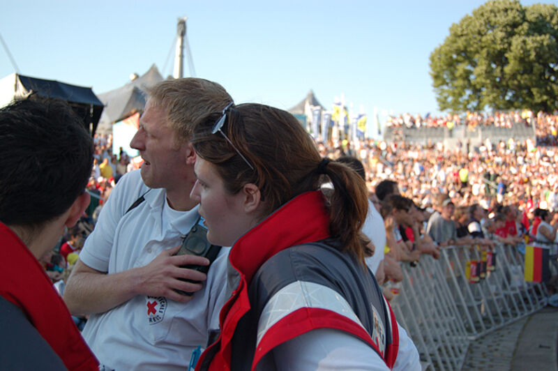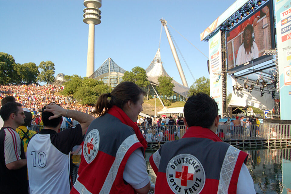 Routiniert und zuverlässig kümmerten sich die ehrenamtlichen Helfer des Münchner Roten Kreuzes am Mittwoch um Tausende Fußballfans beim Spiel im FIFA-WM-Stadion und beim Fanfest im Olympiapark. Rund 200 Sanitäter und Notärzte sorgten für die insgesamt mehr als 80.000 Besucher.