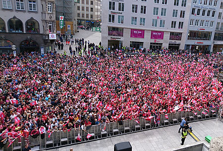 Gestern empfingen nach Medienangaben mehr als 10.000 Fans die Mannschaft des FC Bayern München auf dem Marienplatz. Beim traditionellen Empfang der Stadt zum Gewinn der Deutschen Meisterschaft zeigten sich die Spieler auf dem Rathausbalkon. Auch das Münchner Rote Kreuz war natürlich mit dabei: 35 ehrenamtliche Helfer*innen und vier Ärzt*innen standen für kleine und große Notfälle bereit. Eine Unfallhilfsstelle und vier mobile Sanitätsstationen waren dafür eingerichtet worden. Insgesamt 15 Mal leisteten die Rotkreuzler*innen Erste Hilfe, einen Patienten brachte der Rettungsdienst zur weiteren…