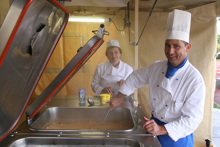 Im Prinzip geht alles, aber mit leerem Magen geht nichts: Der Betreuungsdienst sorgt für kulinarische Untermalung von Einsätzen, hier beim München Marathon